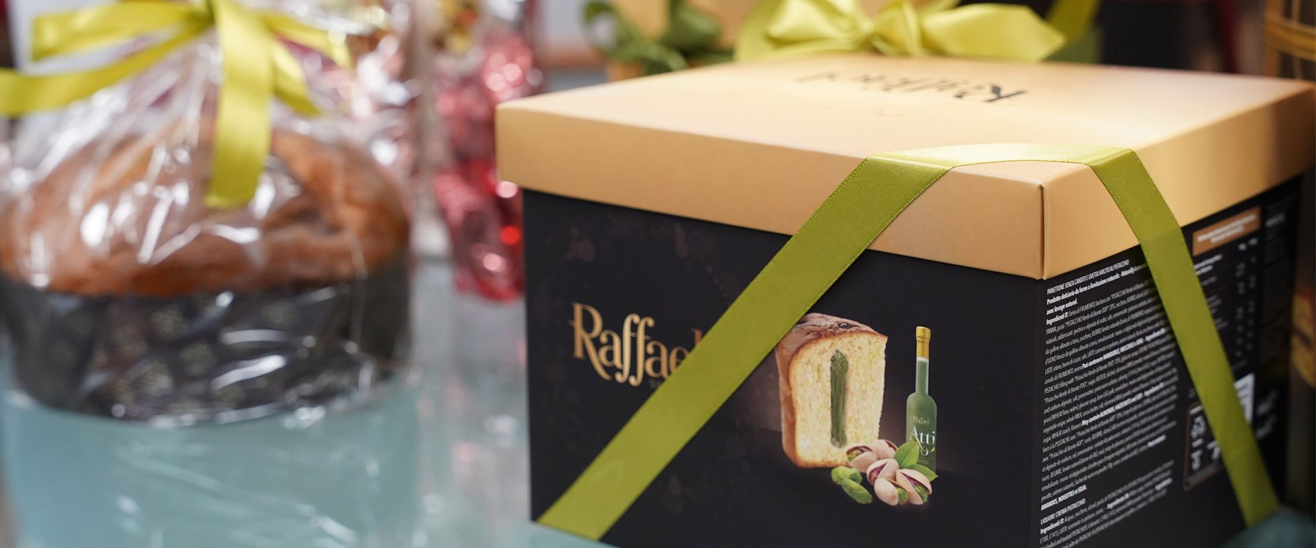Un dolce esclusivo che porta in tavola il gusto autentico del pistacchio. Il panettone Raffel si distingue per la sua consistenza soffice e fragrante, ottenuta grazie a ingredienti selezionati e una lavorazione artigianale. All’interno, un ripieno generoso di crema al pistacchio dal sapore intenso e vellutato, perfetto per gli amanti di questo frutto prezioso.